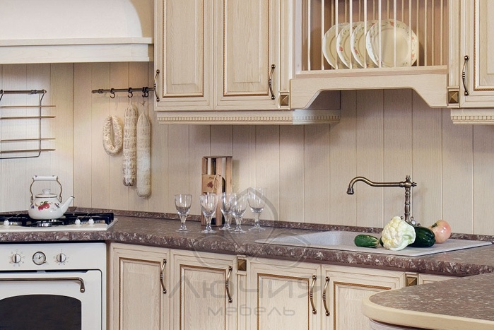 Наша компания использует столешницы только повышенной влагостойкости с пластиком ведущих мировых производителей (в основе – влагостойкая ДСП, облицованная HPL пластиком, герметизированная слоем полимерной смолы, толщина полотна – 38мм).