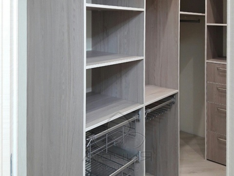 Являясь производителями, мы способны изготавливать как наполнение для гардеробных комнат (стеллажные системы с каркасом из алюминиевого профиля, плитных материалов), так и независимые от планировки зоны хранения с использованием натурального шпона и фасадами из натурального дерева. Для сторонников современного стиля и для оптимального зонирования пространства возможно изготовление как прямолинейных дверей-купе, так и радиусных /выгнутных, вогнутых, волновых/. В своих изделиях мы используем проверенную долговечную фурнитуру Blum, Triomax, Hettich, Vibo.